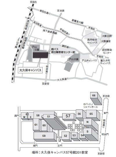 | ● 場 所 | : | 早稲田大学大久保キャンパス57号館201教室 (東京都新宿区大久保3-4-1) |