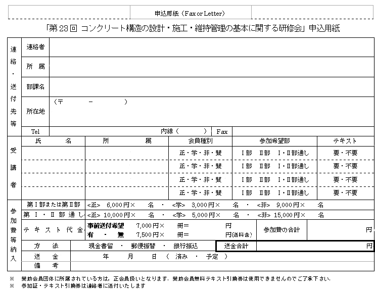 (2)Faxの場合は申込用紙を先に送信願います.