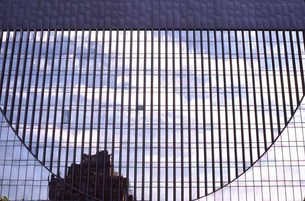 二コレット・モールにつながる傾斜広場地下の金庫と吊構造の11階事務部分