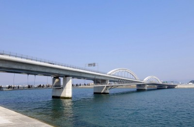 企業者: 沖縄県土木建築部 設計者: (株)日本構造橋梁研究所・(株)芝岩エンジニアリングJV,(株)建設技術研究所・(株)日興建設コンサルタントJV,大日本コンサルタント(株)・(株)中央建設コンサルタントJV,(株)エイト日本技術開発・(株)協和建設コンサルタントJV 施工者: (株)ピーエス三菱・(株)國場組JV,コーアツ工業(株)・共和産業(株)・(有)嘉数建設JV,(株)富士ピー・エス・(株)高橋土建・琉建(株)JV,川田工業(株)・(株)仲本工業・(有)福地組JV,宮地エンジニアリング(株)・金秀鉄工(株)・金秀建設(株)JV,JFE・横河・先嶋建設JV,(株)ピーエス三菱・(株)國場組・(有)新和建設JV,オリエンタル白石(株)・(株)丸元建設JV,三井住友建設(株)・(株)古波蔵組・(有)丸宮建設JV,宮地エンジニアリング(株)・金秀鉄工(株)JV,(株)安部日鋼工業 所在地: 宮古島市平良字久貝〜宮古島市伊良部字池間添 構造形式: (上部構造)PC32径間連続箱桁橋、鋼3径間連続箱桁橋(鋼床版)